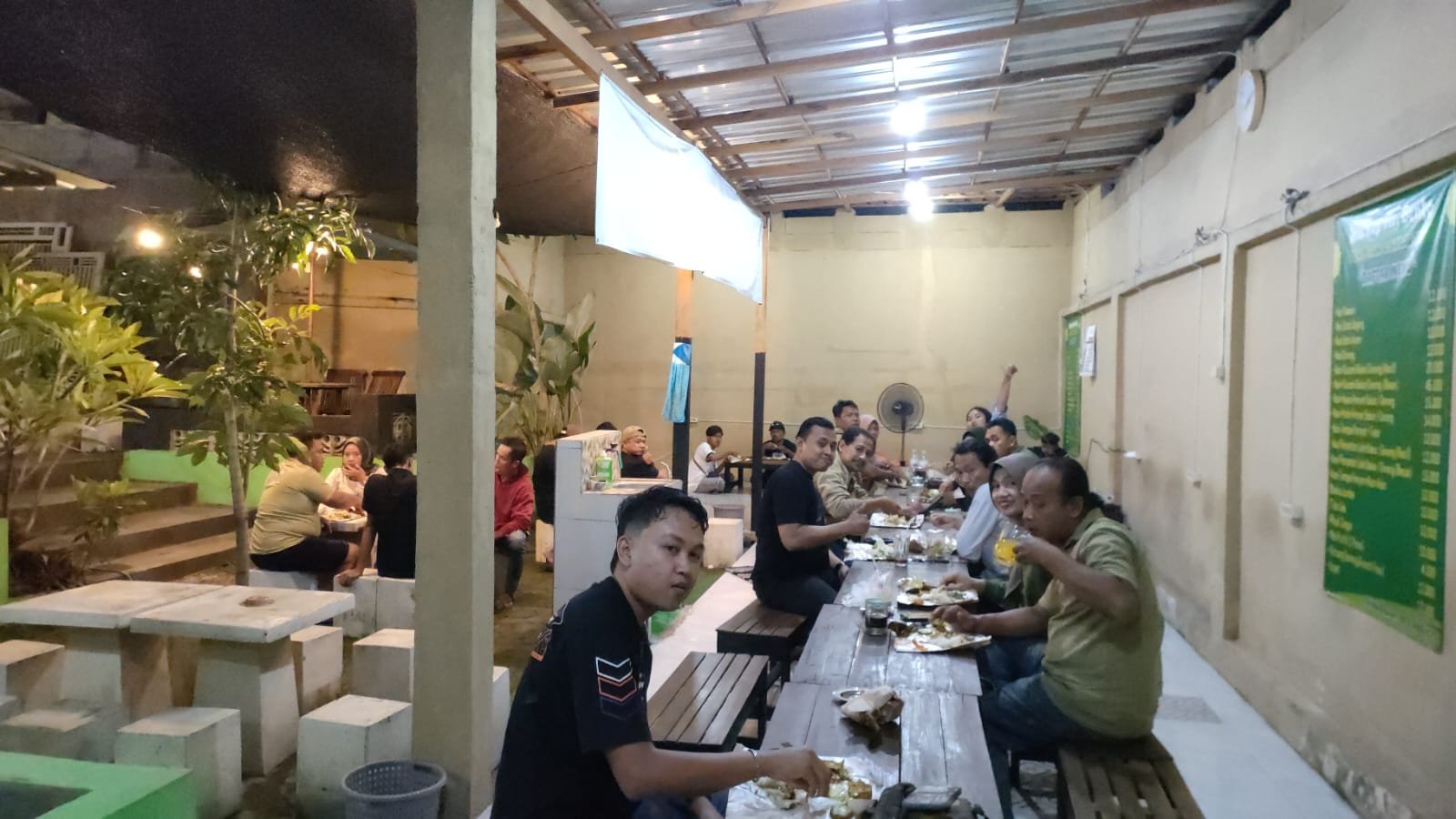 Di sela-sela kegiatan, para anggota menikmati waktu istirahat sejenak dengan makan bersama secara sederhana. Momen tersebut semakin mempererat rasa kekeluargaan di antara peserta yang hadir.