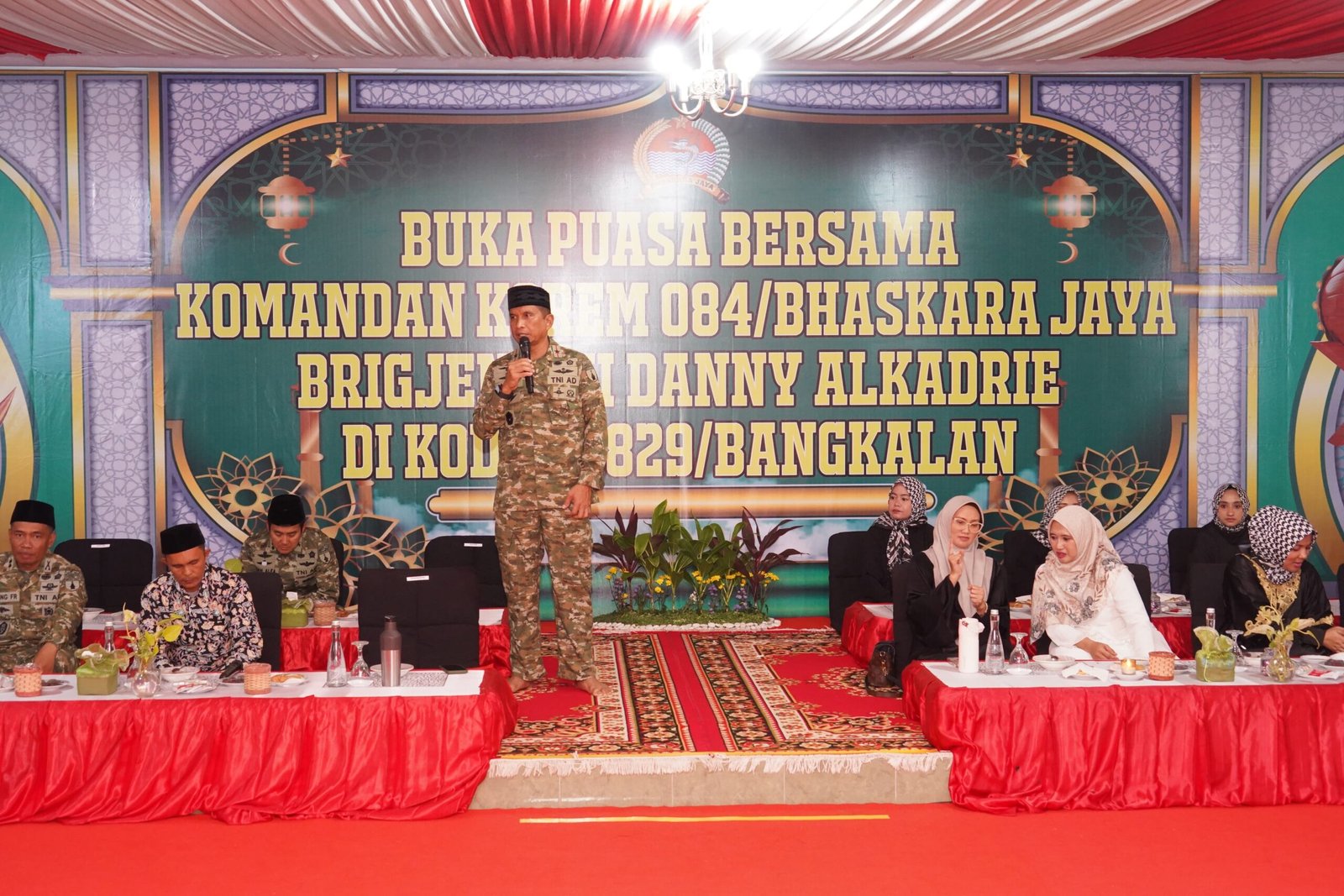 Lpk | Bangkalan – Dalam rangka Safari Ramadhan, Komandan Korem (Danrem) 084/Bhaskara Jaya Brigjen TNI Danny Alkadrie didampingi Ketua Persit Kartika Candra Kirana (KCK) Koorcab Rem 084/Bj Ny. Nining Danny Alkadrie melakukan kunjungan ke Kodim 0829/Bangkalan.