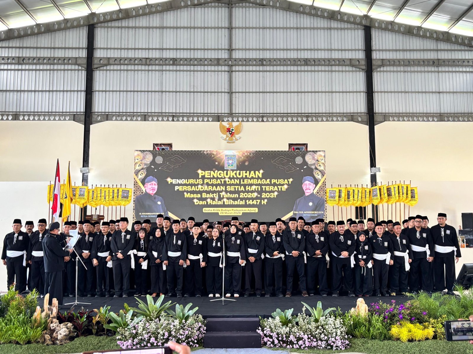 Lpk | Madiun – Persaudaraan Setia Hati Terate (PSHT) resmi mengukuhkan jajaran kepemimpinan tertingginya dalam prosesi khidmat yang digelar di Madiun, pusat perkembangan organisasi pencak silat legendaris tersebut. Kangmas RM. Moerjoko resmi menjabat sebagai Ketua Umum, sementara Kangmas Isbiantoro dipercaya mengemban amanah sebagai Ketua Dewan Pusat.