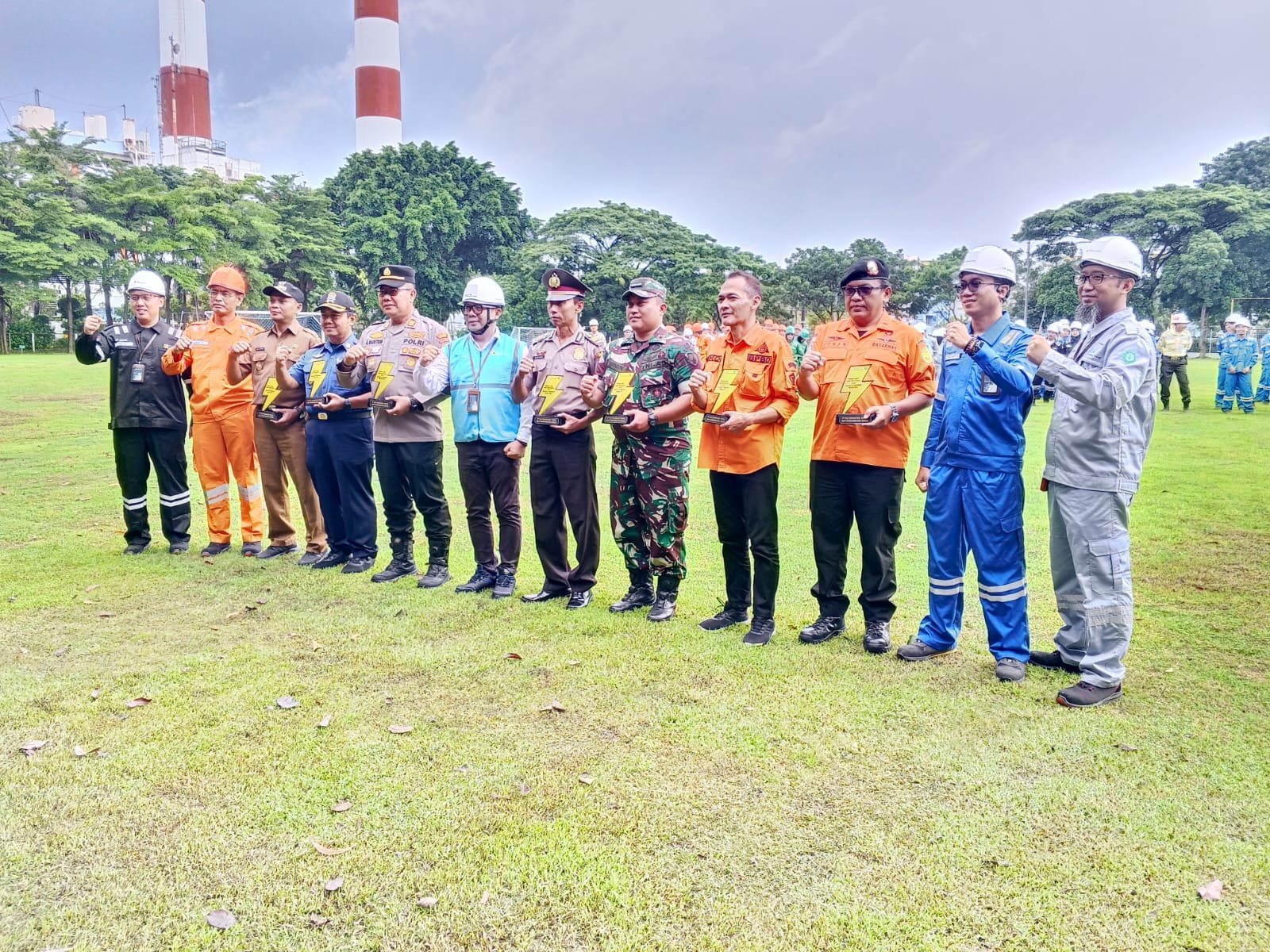 Upacara peringatan diikuti oleh ratusan peserta apel yang terdiri dari unsur TNI, Polri, pemerintah daerah, BUMN, instansi terkait, unsur pengamanan, serta para pekerja dan petugas K3. Seluruh peserta tampak tertib dan disiplin mengikuti rangkaian kegiatan apel yang berlangsung di lapangan terbuka.