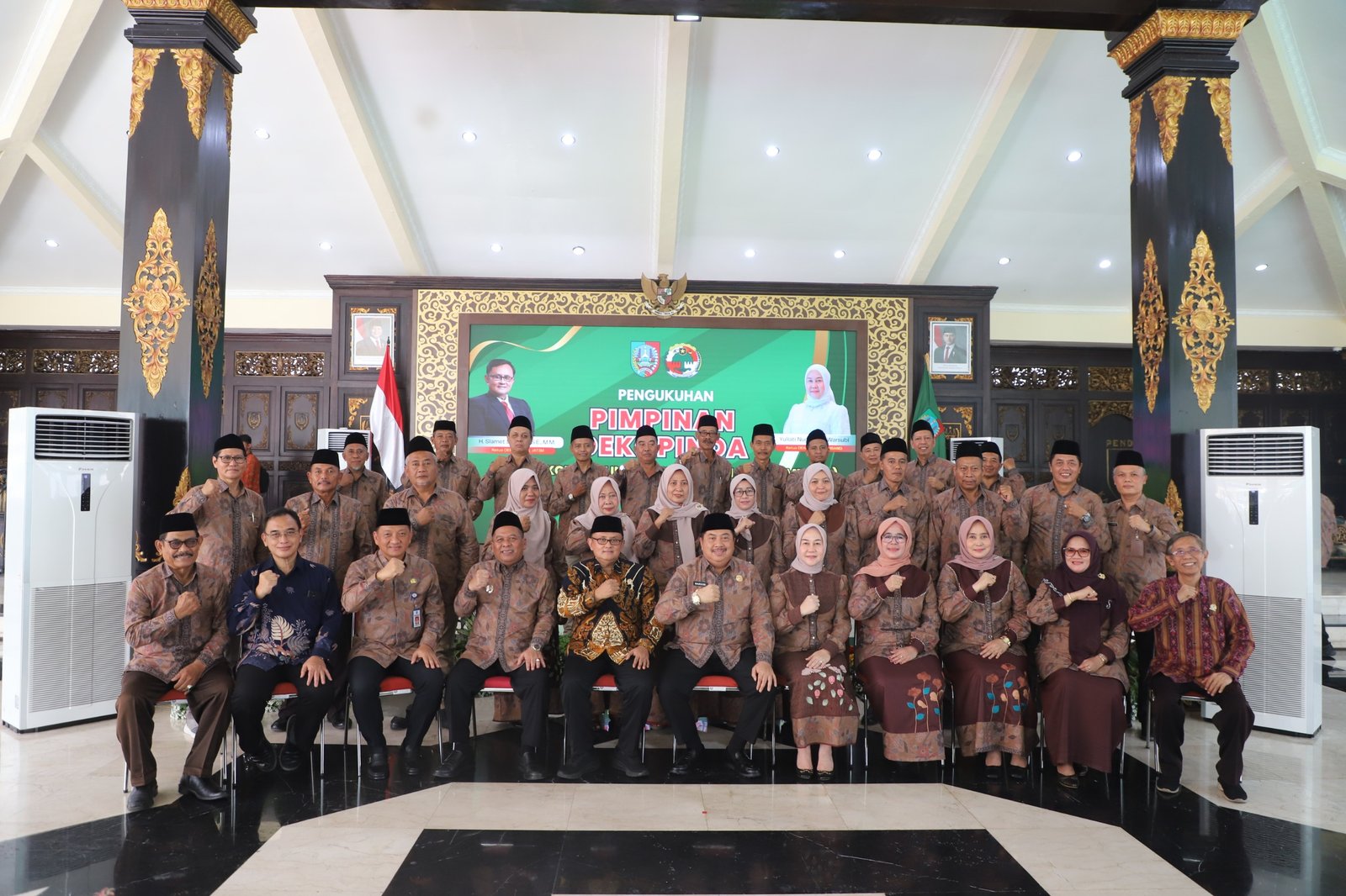 Prosesi pengukuhan berlangsung khidmat di Pendopo Kabupaten Jombang, Kamis (16/04/2026). Acara ini dihadiri langsung oleh Bupati Jombang Warsubi, Wakil Bupati Gus Salmanudin, Ketua Dekopinwil Jatim Slamet Sutanto, serta jajaran pejabat OPD di lingkup Pemkab Jombang.